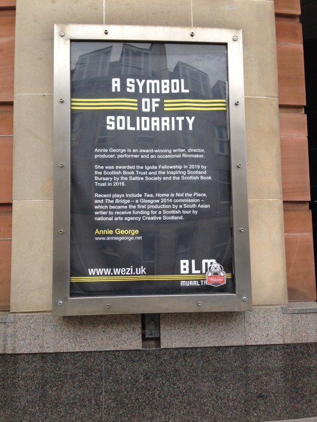 BLM Mural Trail September 2, 2020September 2, 2020 My words on a board outside Traverse Theatre Edinburgh as part of the BLM Mural Trail. Link to the write up in The Scotsman Related